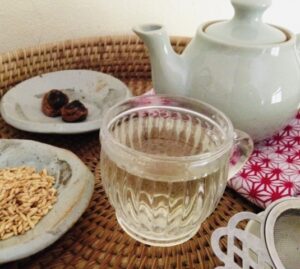 焼いた梅干し+お湯のドリンクは体を内側から温めます。